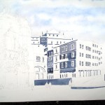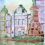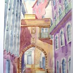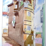 Passei a trabalhar com a aquarela só depois que cheguei a Europa, já que no Brasil ela não é tão difundida. O Óleo sobre tela é o foco principal da pintura no Brasil sendo praticado pela maioria dos artistas, colcocando a técnica da aquarela em um palno secundario. Considero muito dificil essa técnica pelo fato de não haver possibilidade de correções, tudo tem que ser feito de forma direta e decidida e quanto mais simples for a pintura mais bonita fica. Gosto muito do estilo da aquarela estilizada do qual o artista com muito pouca tinta e apenas explorando as manchas consegue transmitir o espirito e o clima da sua paisagem ou do seu objeto que está pintando,ou seja, sem definir demais as formas. Isto é o que mais mim espanta, é que parece ser tão fácil quando observamos uma pintura com essa técnica,e na pratica torna-se tão dificil a sua aplicação. Confesso não conseguir de forma nenhuma, tenho tentado bastante, mais acabo sempre enveredando para o lado do geometrismo, das formas tão bem comportadas.