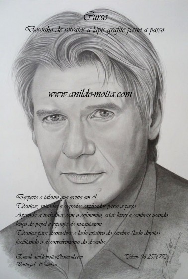 Aprenda a desenhar retratos a lápis carvão. Curso Desenho de Retratos a Lápis/Carvão através de DVD. www.Anildo-motta.com copie e cole o URL no seu navegador e deixe o seu comentário no site que para mim é muito importante. Veja o video no youtube.http://br.youtube.com/watch?v=mMVVvvGlitw Técnicas simples e de fácil aplicação, aprenda passo a passo a criar contrastes entre luz e sombras, conhecer todo o material utilizador para a execução de um retrato. Os diferentes lápis e as suas especificações relativas a dureza e suavidade, características essas que tem um forte efeito na execução das sombras e no esboço da face humana.Como trabalhar com o esfuminho, material indispensável para criar efeitos e dar um efeito nublado e inteligentemente desfocado, dando ao desenho um aspecto mais realista e dinâmico. Aprenda a fazer uso do lenço de papel para criar luz e sombras de forma suave, dando ao desenho uma mancha agradável e uniforme, a qual facilitará o contraste entre as luzes e sombras. Como começar o desenho, qual a melhor posição para conseguir um domínio mais equilibrado sobre o material. Aprenda a desenvolver uma técnica utilizada por muitos profissionais que na maioria dos casos descobrem essas técnicas depois de longos anos de experiencia, técnica essa que permitirá uma visualização totalmente diferente do objeto que pretende desenhar, uma técnica extremamente curiosa e eficaz, dando a oportunidade de descobrir no desenho, todas as falhas que comprometem a qualidade do mesmo, permitindo a possibilidade de copiar de forma mais realista e equilibrada o rosto humano. Essa técnica consiste em desenvolver o lado criativo do cérebro, cientificamente comprovado. Desenvolvendo o lado direito do cérebro, facilitará de forma incrível a elaboração do desenho. Métodos práticos e inovadores. Resumido em 2:40 minutos de ensino e informação com total clareza e praticidade. Contacte já e acenda esse talento que existe em si. apoio on line. Aproveite a promoção que lhe dará gratuitamente o meu livro (ebook) “Aprenda a desenhar retratos a lápis”. Deixe o seu comentário ou retire dúvidas existentes clicando: https://anildomotta.com/michael-jackson/#respond
