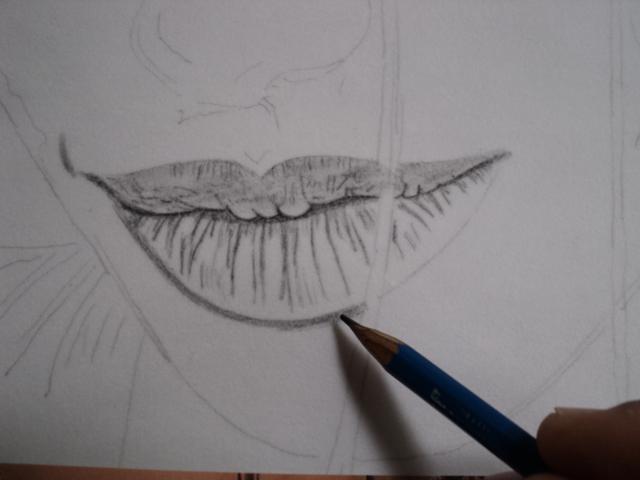 DESENHO REALISTA ANGELINA JOLIE. Passo a passo » Desenho dos lábios Angelina Jolie